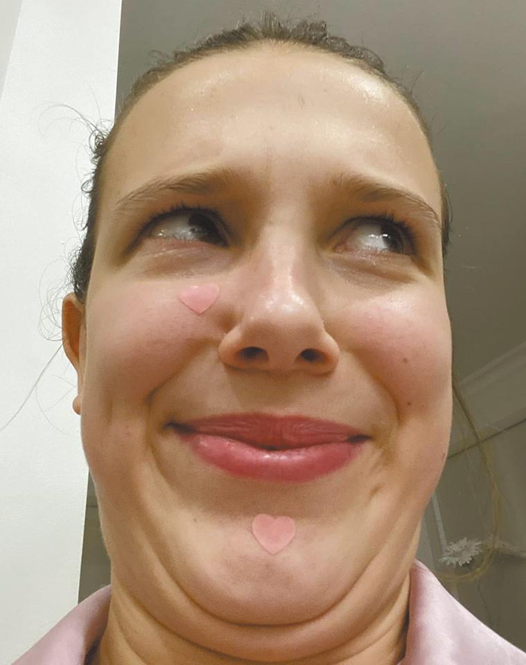 16歲女星米莉芭比布朗(Millie Bobby Brown)與粉絲分享近照,一個造型是一貫的成熟打扮(右圖),但轉個頭,她又晒雙下巴醜樣相片,非常搞鬼。
