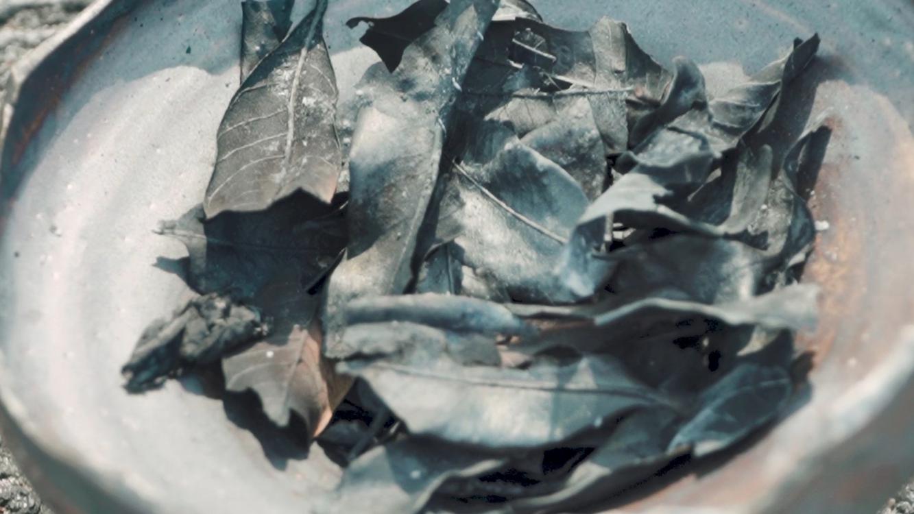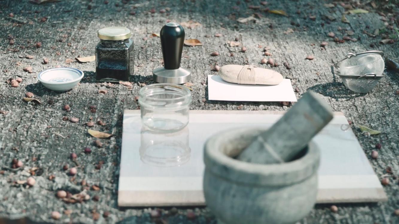在離島常見村民掃落葉,燒落葉既可驅蚊趕蠓,還可以辟蛇,是村民的生活小智慧。Jessica家門前有棵龍眼樹,燒出來的樹葉,除了有葉香,炭黑中帶紫藍色,Jessica忽發奇想,用咖啡壓將它磨成墨水,畫畫寫字,送給自己或者大自然,「其實都是一種入靜的過程,我覺得這狀態好吸引我,想繼續延伸,多做一些事。」