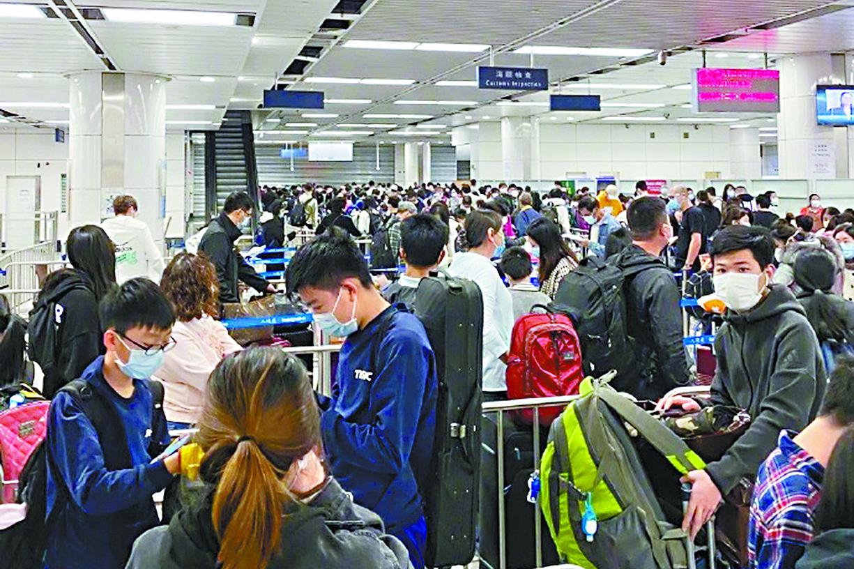 據本港入境處統計,自港府上月29日宣佈周二起停課後,出境到深圳的香港居民人數大增。上月30日有914人從深圳灣口岸出境,翌日激增至2,704人,其後四天日均超過2,800人,入境大樓人頭湧湧。網民王小姐稱帶女兒北上避疫,由進入口岸、檢疫、出關,共花了超過八小時,後被分流到福田某指定隔離酒店,才被告知酒店客房已爆滿,最後要自行轉往另一家非指定酒店入住,消毒、登記、量血壓又花近一個多小時,到半夜才能安頓下來。