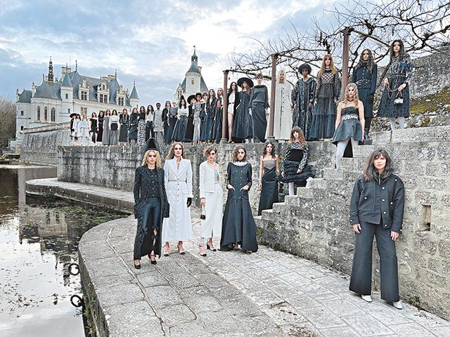 Chanel每年舉行工藝時裝騷,通過旗下工坊如:刺繡工坊Lesage、羽絨工坊Lemarie、珠寶工坊Desrues等,展示傳統工藝的珍貴傳承。今次以錄影形式紀錄,在發佈兩天舉行真實的時裝騷,騷上300個工作人員、模特兒,全場只有一個嘉賓睇騷、代言人姬絲頓史釗域(Kristen Stewart)。她騷後坦言在了解城堡後,睇騷時曾經想像自己的角色是甚麼,「今次我覺得真的非常personal。」 女主帥Virginie Viard挑選了這個女人愛戀與戰火交織時,屹立不倒的城堡作主題及場地,因為Coco Chanel美學世界受到當時文藝復興影響。