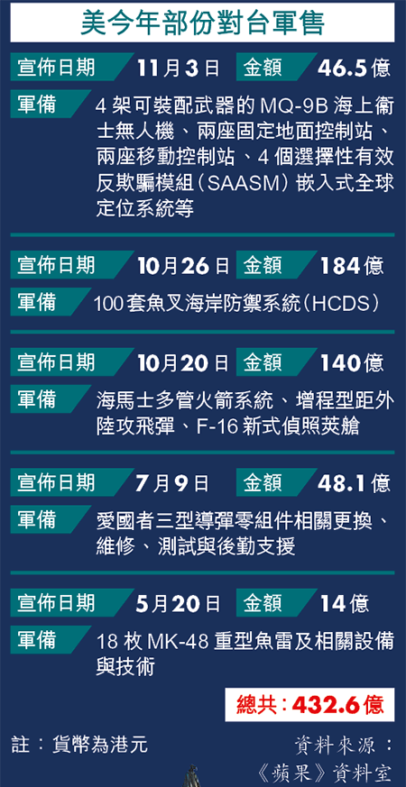 不過,當選的美國民主黨會否和台灣依然友好、這類型的軍備購置還能否進行,也令人關注。台灣駐美辦事處代表蕭美琴昨在網上對身處洛杉磯的僑民團體演講,指在華府第一手接觸,台獲不分黨派的支持,其中一個原因是台灣防疫繳出漂亮成績單,成為世界模範生,完全是台灣人自己爭氣。
