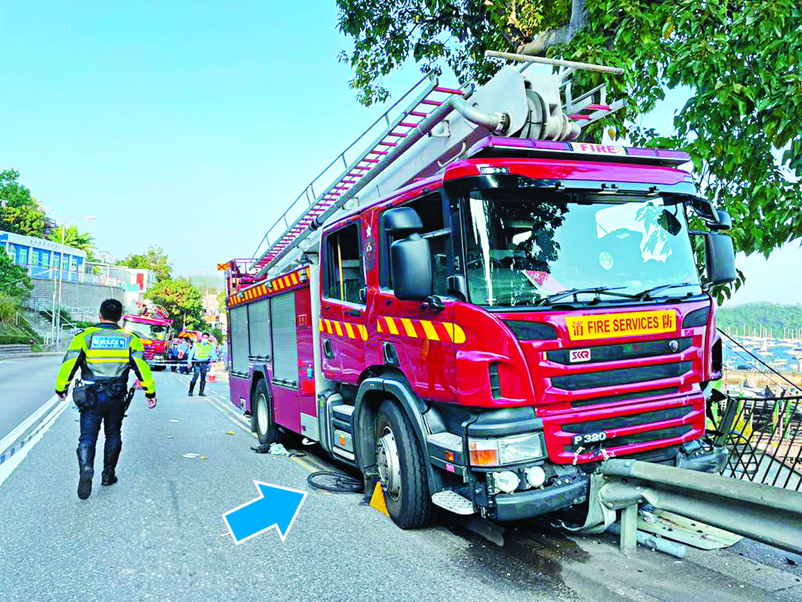 【本報訊】西貢發生罕見消防車撞死人意外,昨日下午一輛剛完成行山人士拯救行動的消防車,在西貢公路近白沙灣上斜時,突然鏟向左邊行人路,先撞低一名因疫情滯港的哥倫比亞籍單車男,再撼向一部停泊路肩的七人車,單車男連人帶車慘被捲入消防車車底,被困一小時才獲救,送院證實死亡。據悉事後有人聲稱受刺眼陽光影響而扭軚肇禍。警方其後以涉嫌危險駕駛導致他人死亡,拘捕消防車司機,現正被扣留調查。