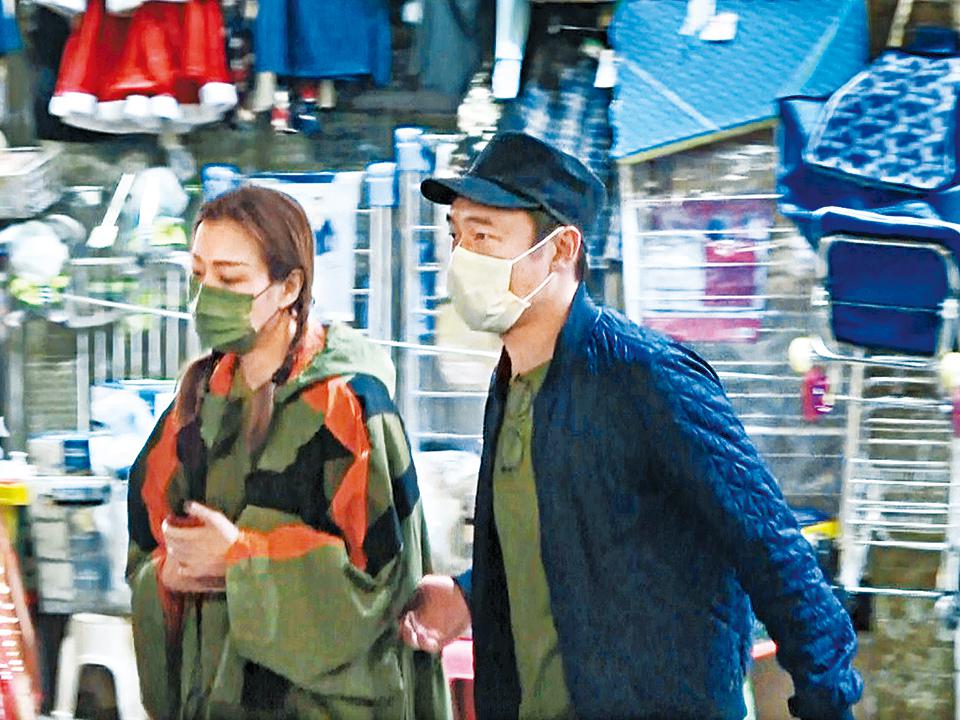 當日約下午6時許,安仔和Sammi在凍肉店揀選食材,現場所見二人沒有交流,Sammi向左走,安仔就向右走,其間,Sammi漫無目的地顧盼,不時拎食物查看。至於安仔就拎起一包魚肉,為看清楚食物標籤,就戴上眼鏡細看。隔了一會兒,Sammi靠近安仔身邊研究食材。當安仔發現有記者拍照,即時通知Sammi,二人商量完一番後,於是決定放棄買餸急步離開。安仔一馬當先離開凍肉店,之後回頭等Sammi,見Sammi行得有點慢,安仔遂掹着Sammi衫袖同行,二人再快步行到泊在路邊的七人車,匆匆離去。