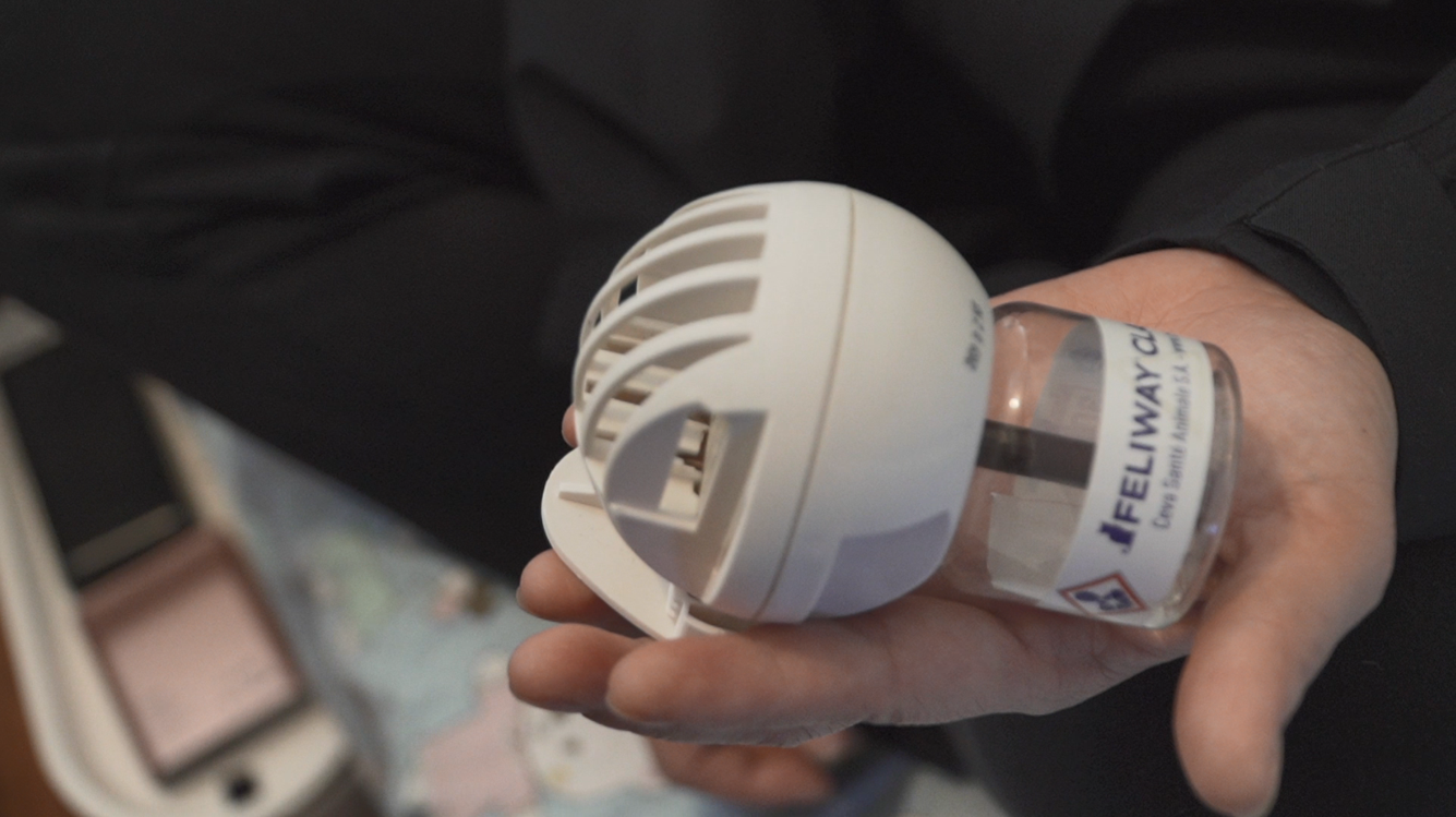 我們找來貓行為治療師(擁有Certified Advanced Feline Training Professional及Certified Cat Behaviorist資格)Briganne Carter上門觀察。雖然何生何太認為蝦餃的情況是在重病後才變得嚴重起來,Briganne卻認為這與傳染性腹膜炎沒有直接關係。「這個疾病的確令牠的壓力大增,也讓牠失去安全感,但我認為這是與霸佔地盤有關。很有趣的是,他們提到蝦餃是在早上的某個時段小便,而這個正是霸佔地盤的典型例子。」Briganne解釋,霸佔地盤是貓咪在早上太陽升起後的首要大事,同時亦可從小便的位置看出這是個霸佔地盤的問題。