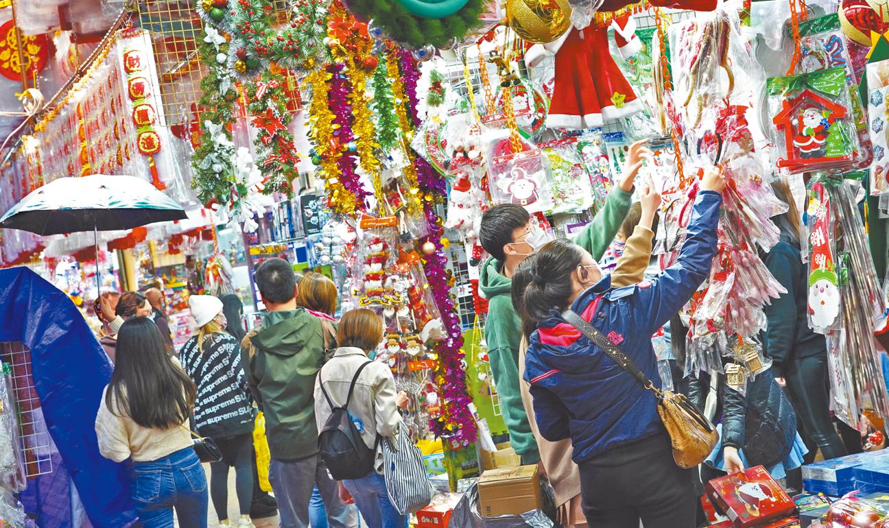 【本報訊】外出旅遊不成,留港又受限聚令、禁晚市堂食等措施影響,今年聖誕氣氛欠奉,港人惟有留家過節。為了點綴家居,港九兩條售賣聖誕裝飾的「玩具街」因而變得熱鬧,但購物的背後,也許只是歷經不愉快一年後的補償。《蘋果》記者在玩具街遇上的臉孔,是欷歔多於歡笑。