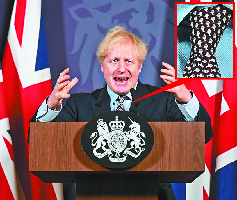 約翰遜平安夜在網上發放的賀節片段,形容協議是「天大喜訊」,建議國民可當成聖誕節午餐讀物。他拿着一大叠協議文本,指去年的分手協議只是前菜,新協議才是「盛宴,有很多魚的」。他亦戴上有很多魚圖案的領帶。