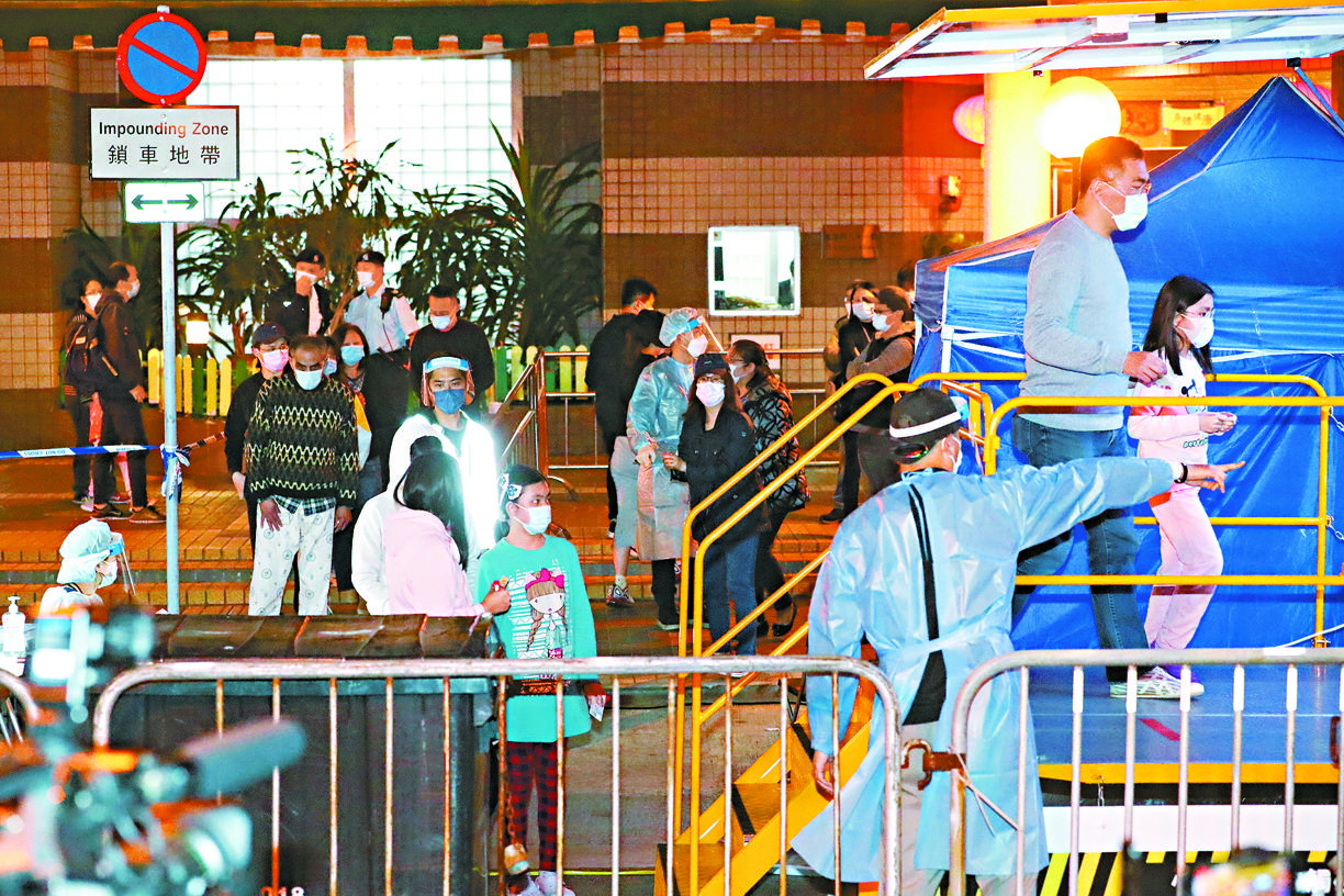 【本報訊】政府九日內第四度突擊「封區」,昨晚7時起,將藍田麗港城5座及7座列為「受限區域」,要求居民留在住所及接受強制檢測,預計今晨7時完成。有關安排惹居民極度不滿,有人向警員高聲叫囂,批評政府「做騷」、「當我白老鼠」,被警員以涉在公眾地方行為不檢拘捕,亦有樓上居民大喊「黑警死全家」。食衞局長陳肇始到場視察,被困家中的居民爆粗怒罵她。