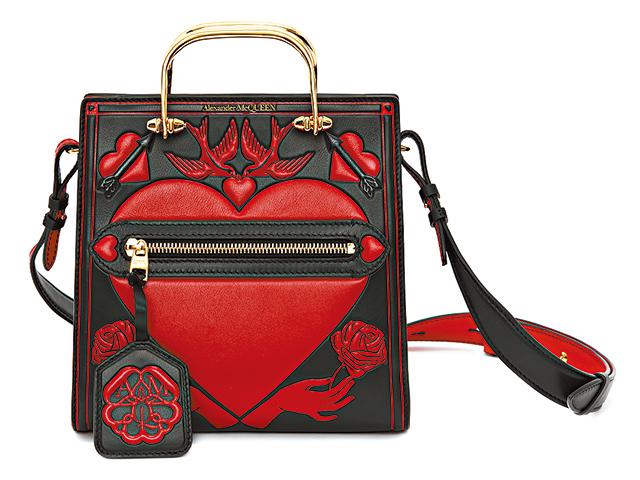 Alexander McQueen也推出別注系列,包括飾有心形瞳孔眼睛圖案的Tread Slick運動鞋,披上象徵愛情的心形碎花圖案Short Story手袋,以及各式浪漫符號的羊毛和絲綢印花或刺繡圍巾。