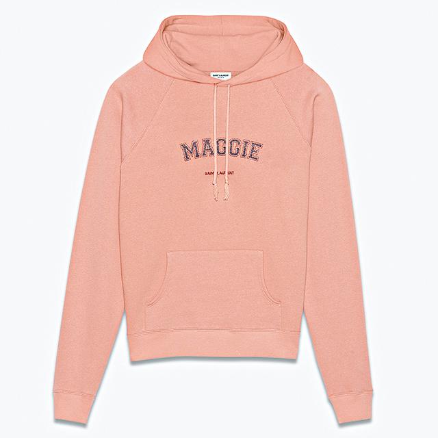 如果想送上獨一無二的禮物,可以考慮Saint Laurent衞衣。品牌最近首次推出個性化訂製服務,客人可在水洗粉經典連帽衞衣,訂製印上專屬名字,以名示愛。