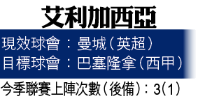 曼城出色的防守成為藍月表現大勇的關鍵。西班牙年輕守將艾利加西亞前途備受看好,但獲派上陣時間有限。受到西甲巴塞隆拿追逐下,曼城領隊哥迪奧拿已透露加西亞將在今季結束後合約屆滿離隊。由於加西亞在季後能以自由身轉投其他球會,因此他在冬季轉會窗離隊機會不大,財困的巴塞難以在現階段支付轉會費。