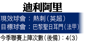 迪利阿里已被熱刺主帥摩連奴徹底棄用,這名24歲英格蘭中場要拯救自己前途,以及爭取在國家隊的位置,重燃入選今夏歐國盃決賽周大軍名單希望,餘下的時間已經不多。阿里昔日深得熱刺前度主帥普捷天奴重用,後者目前已轉投法甲豪門巴黎聖日耳門執教,他重投恩師懷抱,亦屬合情合理之舉。