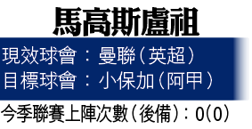 曼聯今季戰績更上一層樓,領隊蘇斯克查已經找到了屬於自己的班底,阿根廷守將馬高斯盧祖顯然不在其計劃中,長期被投閒置散。已效力曼聯七年的盧祖,是時候鳥倦知還,有意返回老家效力,阿甲班霸小保加有意出手。紅魔另一名阿根廷球員門將羅美路同樣不受重用,爭取在轉會窗關閉前離隊。