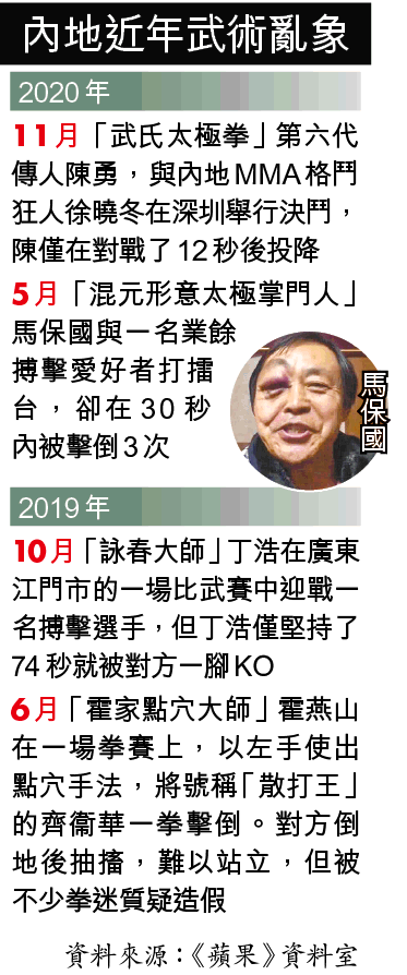 這股率先從民間吹起傳統武術打假風潮,其後亦由官方「接手」。國家體育總局、公安部、民政部、衞健委及市場監管總局去年11月聯合印發了《關於加強搏擊類項目賽事活動安全管理工作的若干意見》,規範搏擊類體育賽事活動,這次再新推的《辦法》無疑是把相關建議再細緻化成具體措施。