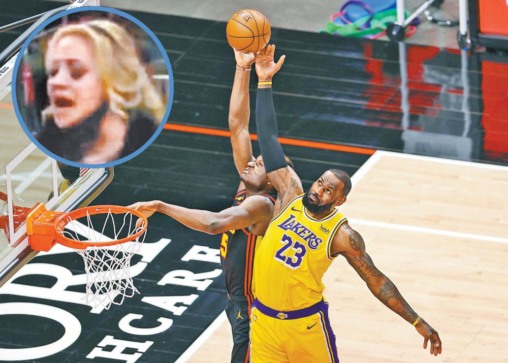 周一NBA常規賽湖人作客鷹隊,紫金兵團今戰被對手苦纏,第四節更險遭逆轉。但場邊發生的小插曲就令賽事更加緊張,湖人球星勒邦占士(LeBron James)比賽末段跟一位女球迷發生口角,後者最後被驅逐離場。今場「大帝」獲21分,更包辦湖人最後關鍵9分,領軍以107:99擊敗鷹隊,取下兩連勝。