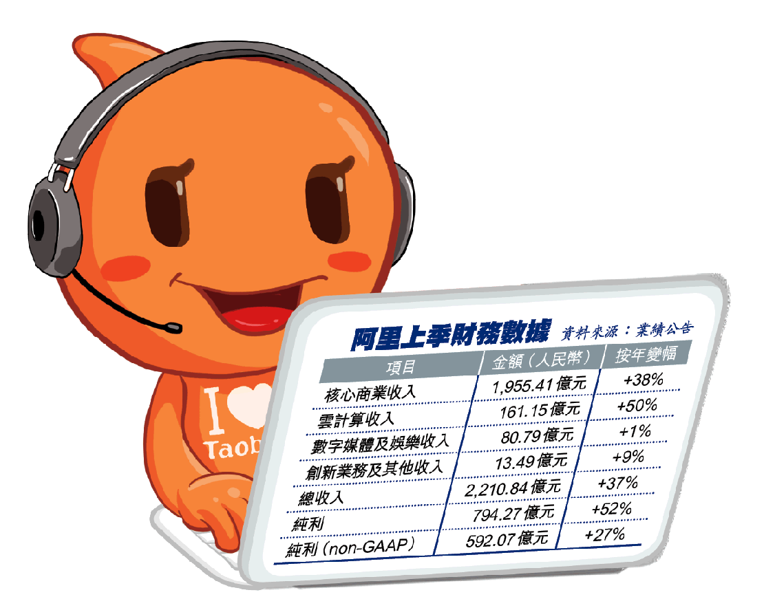 若論財務數據,阿里業績有超預期的表現,除了non-GAAP純利比預期佳,收入亦按年飆37%,達2,210.84億元,至於整體純利,則按年升52%。
