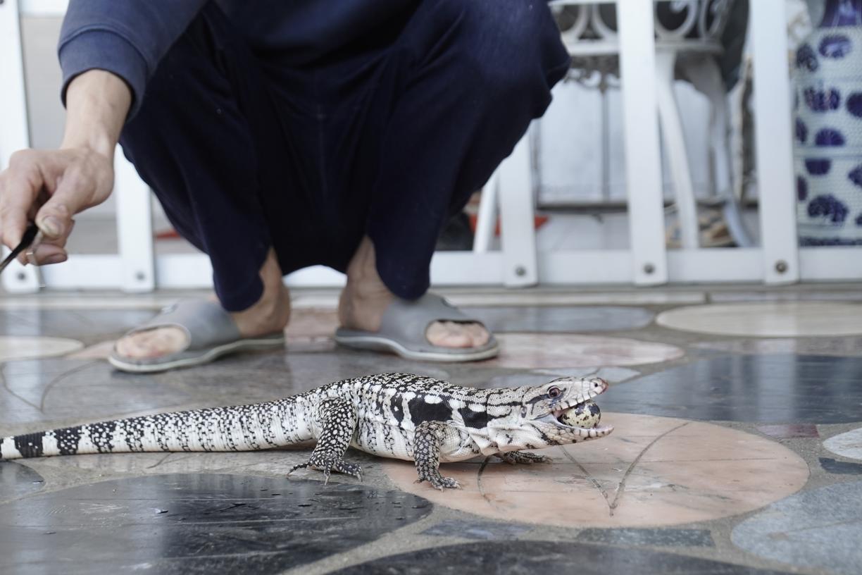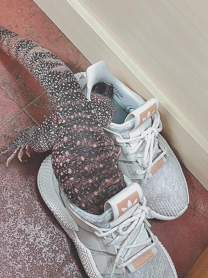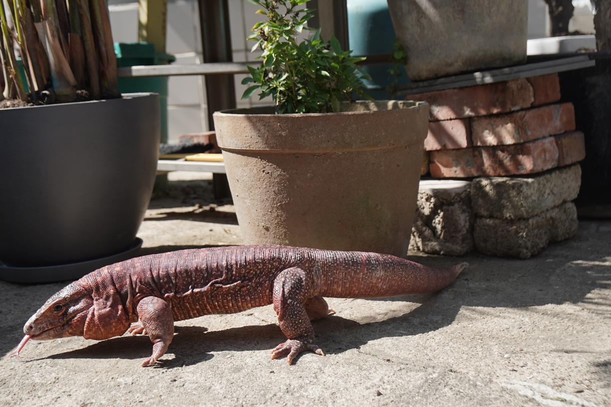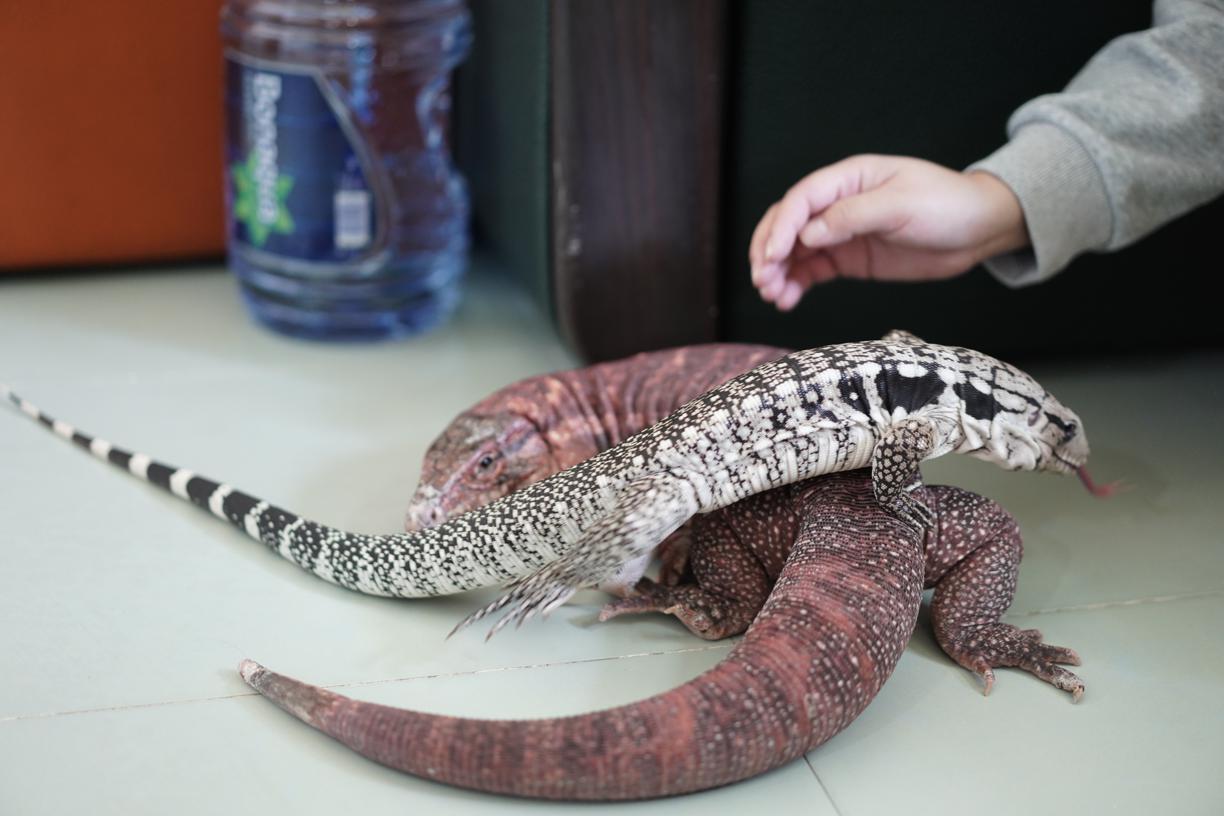 心肝寶貝除了Molly,約一年前,藍泰加蜥亦加入成為這個家庭的一分子。「牠叫小朋友,以前是我哥哥飼養的,但他常常不在香港,又不習慣飼養大型蜥蜴,所以就將牠交給我照顧。」還是幼體的小朋友由於繁殖器官不明顯,未能確定性別。比起性格穩定的Molly,牠顯得更活躍,喜歡四圍爬,「數月前牠在花園曬太陽時,乘我們不為意就跑了出去。我們找了差不多兩星期,甚至出懸紅告示還是無法將牠找回。直到有天轉冷,突然看見牠趴在門外曬太陽,我立刻用小鼠引牠回來!」經此一役,Rikii現時將小朋友放風都會金睛火眼看着牠,一來避免不知牠竄到哪去,二來是牠跟Molly的體形相差太大,避免牠們攻擊對方。