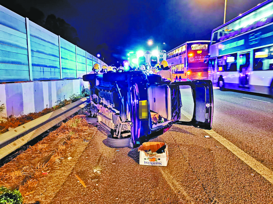 10多分鐘後,警方在兩公里外的元朗公路近十八鄉迴旋處,發現涉事私家車失事,據知當時私家車曾撞及一輛九巴。當時女司機不知所終,警方正追緝女司機歸案。