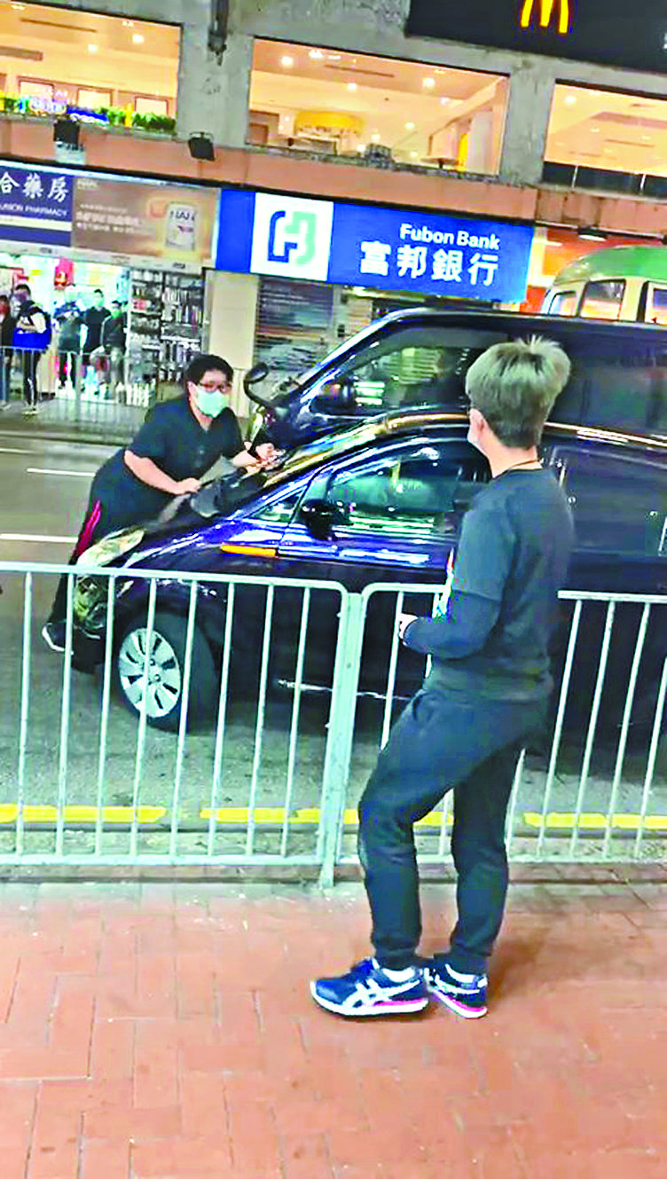 【本報訊】元朗昨晚發生瘋狂駕駛事件,一輛私家車在教育路撞向一輛停泊在前面的客貨車車尾,其後倒車意圖駛離現場。客貨車司機下車站在私家車車頭拍攝車牌,其間私家車竟撞向客貨車司機,客貨車司機趴在私家車車頭阻止,竟遭私家車推行120米拋落地。私家車逃去後在兩公里外的十八鄉迴旋處失事,女司機逃去無終。