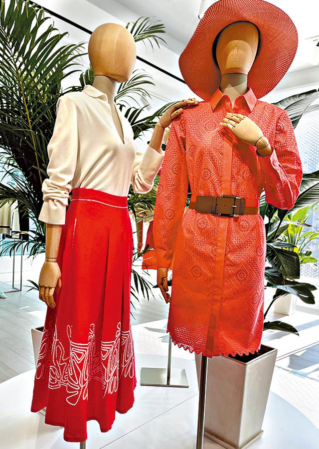 Loro Piana女裝系列色彩鮮明,由初春的peanut butter、ginger、pale rose色,至夏日bright white、gold lichen、gentian blue色,透過色塊和幾何圖案的構圖訴說色彩故事。喀什米爾羊毛混紡而成的多款外套,以腰帶或抽繩做收腰設計,連身裙、上衣或 polo衫等飾滿植物印花圖案及刺繡,飄逸自然,配搭編織肩帶手袋,更添氣質。