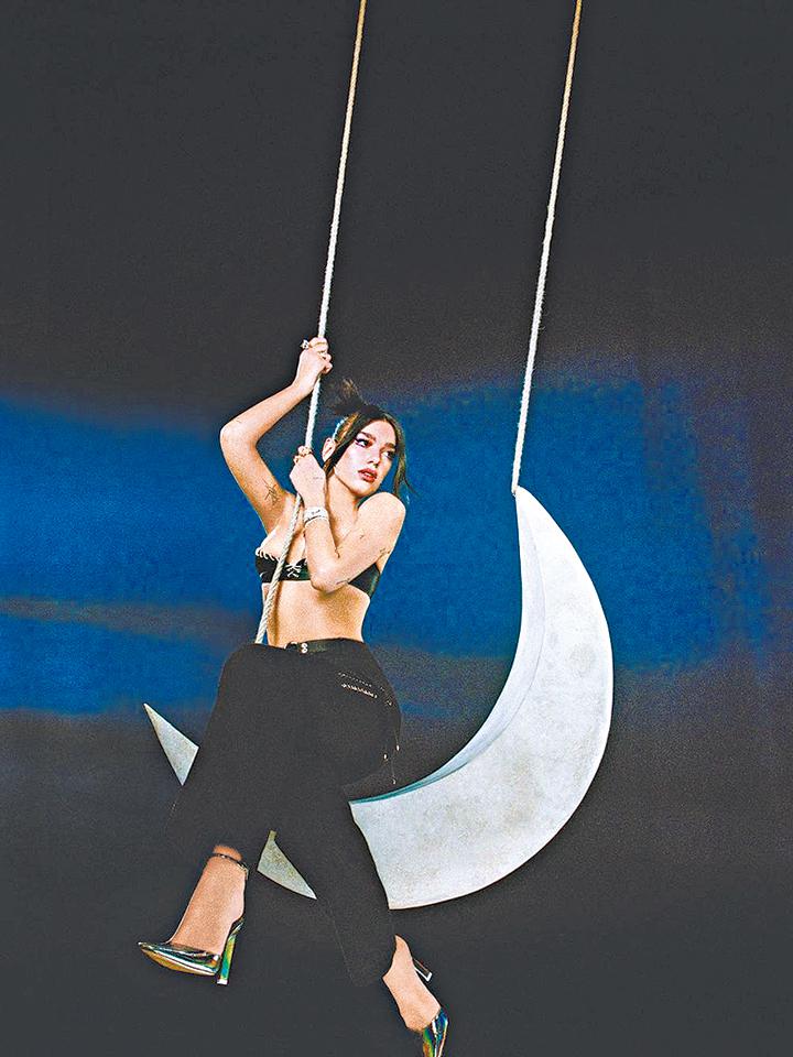英國女歌手Dua Lipa愛情事業兩得意,與名模Anwar Hadid打得火熱,最近推出的新歌《Levitating》都大受歡迎。她於Ig貼出自己坐於月亮上的相片,慶祝新歌打入美國流行榜頭五名,狂野又性感。
