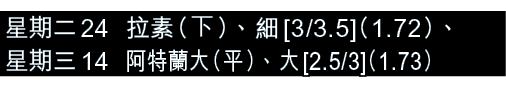 截稿前馬會尚未開盤,盤口僅供參考,讀者記得留意足智彩網頁。
