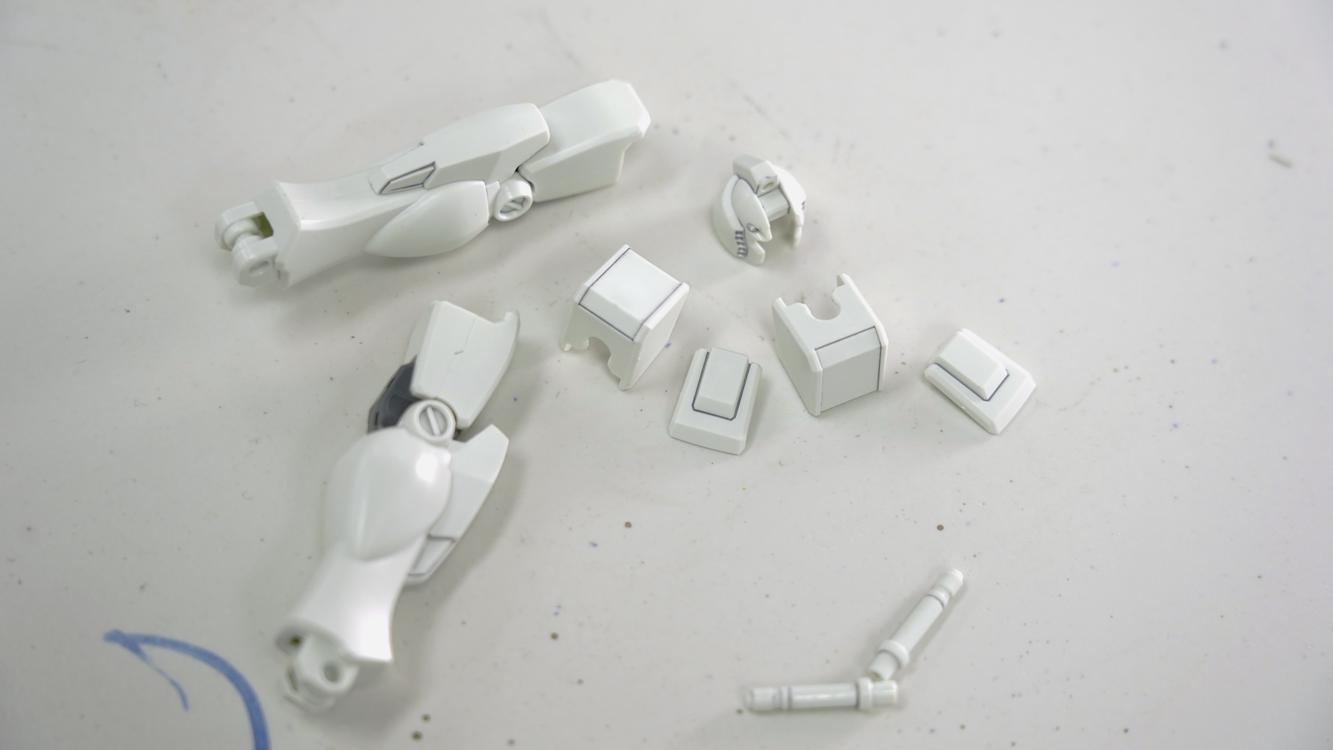 砌好模型就進入滲線部份,滲線即是將模型的刻線上色,加深輪廓增加立體感,新手可能覺得用gundam marker這類筆形工具較易控制,但一樽樽的滲線液可能更易用,他覺得Flora第一次砌模型已可嘗試。