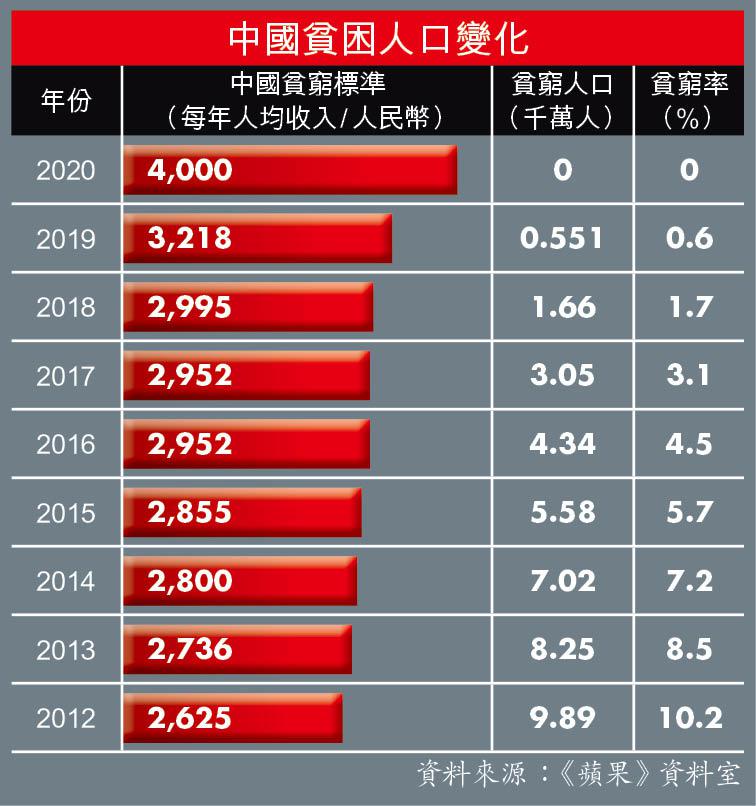 【本報訊】「脫貧攻堅戰取得了全面勝利,現行標準下9,899萬農村貧困人口全部脫貧。」中共總書記習近平昨早在北京的全國脫貧攻堅總結表彰大會上正式宣佈中國全面脫貧,他形容為「創造了又一個彪炳史冊的人間奇蹟」。不過,中國所訂的貧窮線比國際標準為低,加上內地政策未見透明,有學者質疑中國或只是「裝飾性扶貧」。