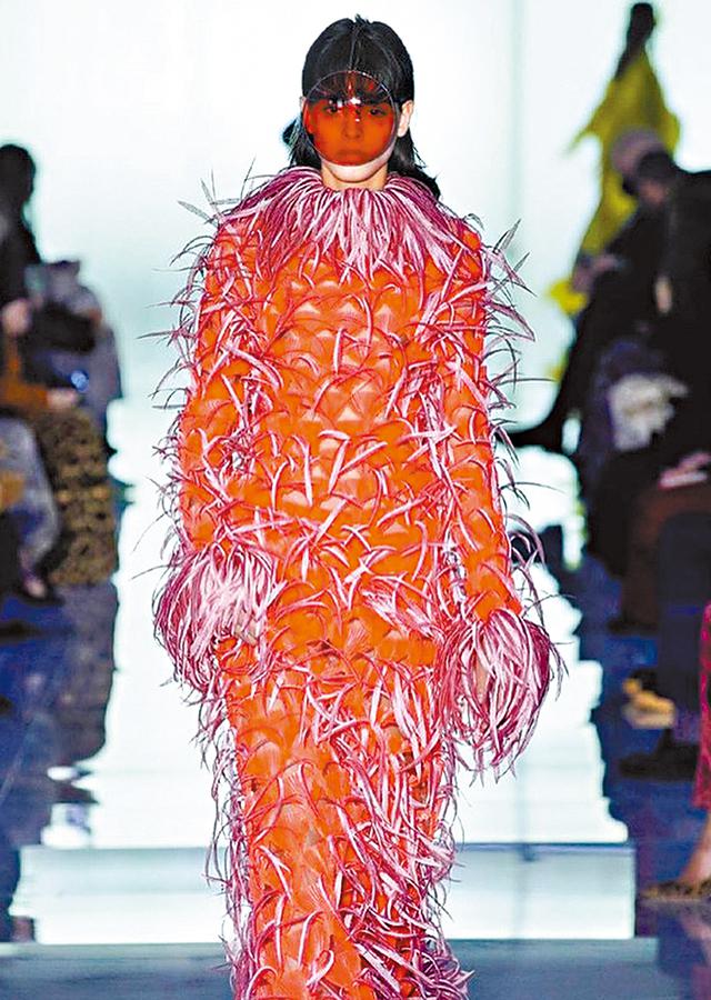 Del Core首個秋冬系列以實體騷形式展示,連身裙飾上綁帶及巨型蝴蝶結細節,搭配喱士絲襪,甜美嫵媚。和服廓形配合花卉印花和不同結構的黑點圖案,以大量羽毛點綴,怪得別有韻味。Daniel從輪廓上變奏,葉子般的不規則立體剪裁綠色晚裝設計、蘑菇形bell sleeves連身裙、bling bling刺繡的苞形印花,令敎人驚嘆不已。他將大自然和精湛工藝完美結合,令人更期待往後的作品。