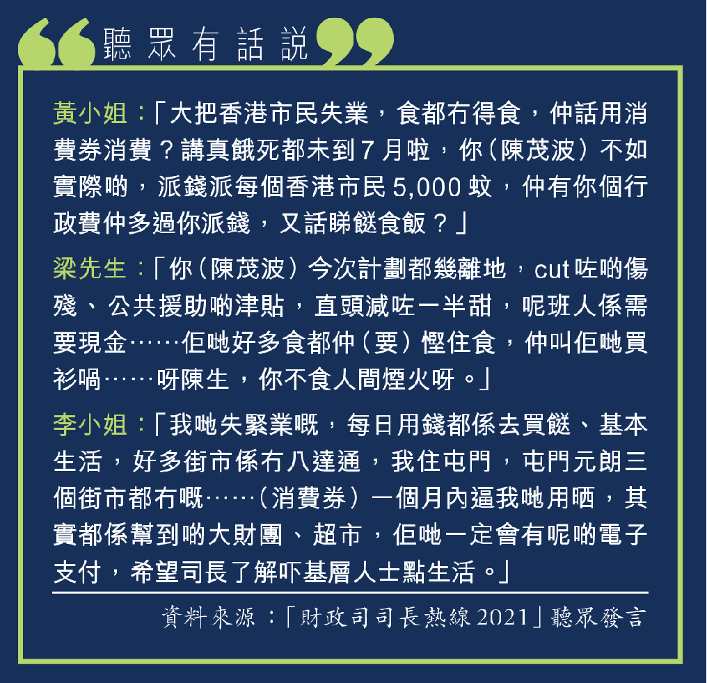 中大商學院高級講師李兆波指出,「0.7%都係政府估數,要睇啲錢用喺邊度」,由於政府未公佈計劃詳情,暫未知有哪類商戶受惠,「服務業按摩又係咪?幫狗仔沖涼又得唔得?全世界都想爭呢360億,但可能啲錢去晒超市」,結果未必能幫助有需要行業。他又指,「(計劃)360億等於疫情前香港一個月零售業銷貨額,舊年3月疫情最差都係跌咗100億」,提振0.7%即是額外多約200億元,「(經濟幫助)真係比較有限,你當補返兩個月零售業銷貨額畀平時差額」。