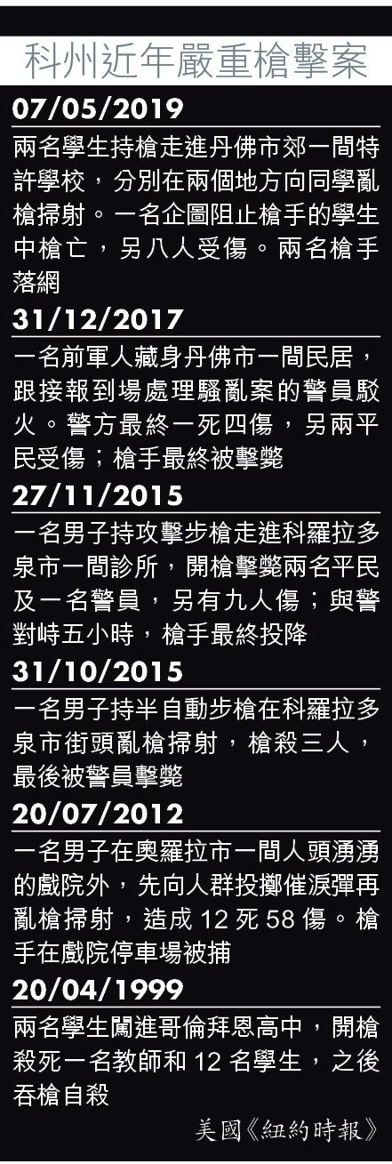 美國一周內發生第二宗大規模槍擊案,科羅拉多州博爾德市(Boulder)一間超市前日下午響起多下槍聲,店員與顧客驚惶逃命,至少10人死亡,包括最先趕到的一名警員。單獨犯案的槍手被捕,據報重傷。連同上周八人死亡的亞特蘭大按摩院槍擊案,槍械管制問題勢將再成焦點。