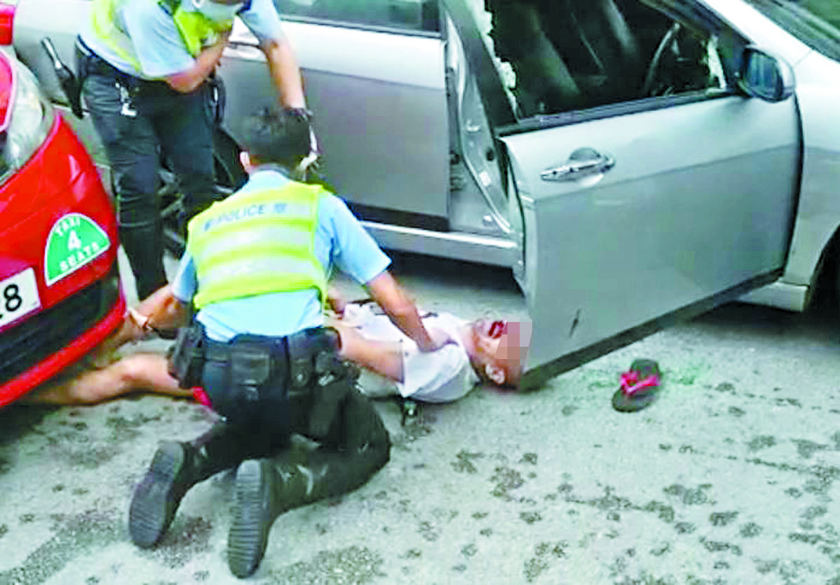 私家車續駛至沙田圍路時,突然駛入對面線逆駕至銀城街近沙田威爾斯親王醫院外,此時前面車輛因燈號停下,司機企圖從兩輛的士之車罅突圍,但被前面城巴所阻。警車追至,警長與警員落車,走到私家車兩旁擎槍戒備,警告司機落車。