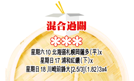 日職星期六就得一場柏雷素爾對北海道札幌岡薩多啫,札幌近期表現穩定番啲,相反柏雷素爾就麻麻地,而且佢哋近期攻力都唔係好夠,近5輪先入得2球,平手盤不如博吓札幌好過。