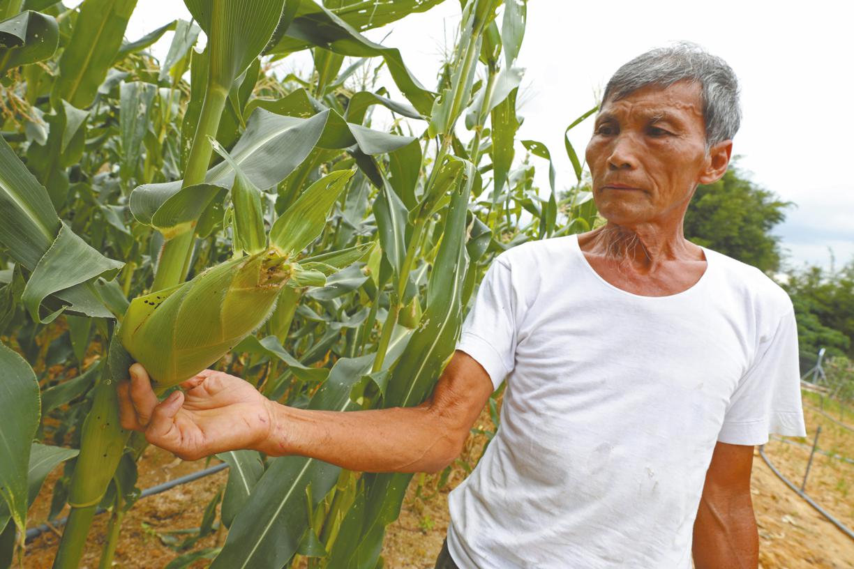 【本報訊】由粉嶺聯和墟一帶駕車約20分鐘,深入蜿蜒鄉郊小路,翠綠山頭之間,忽有三米高的新建石屎躉與鐵絲圍欄。圍欄內被石屎小路分成三大幅土地,其中一幅未有人開墾、寸草不生的黃色泥土。右邊山墳前種滿西瓜、芫茜、豆角、茄子等的,是72歲阿戴復耕的農田。新界東北發展計劃摧毀大量農田,發展局推出「特殊農地復耕計劃」,安置被逼遷農夫租用指定官地復耕。阿戴就是首批被發配到粉嶺華山復耕的農夫,他的農地不但偏遠,更挖出大量石塊,部份粟米未收割已變黃。