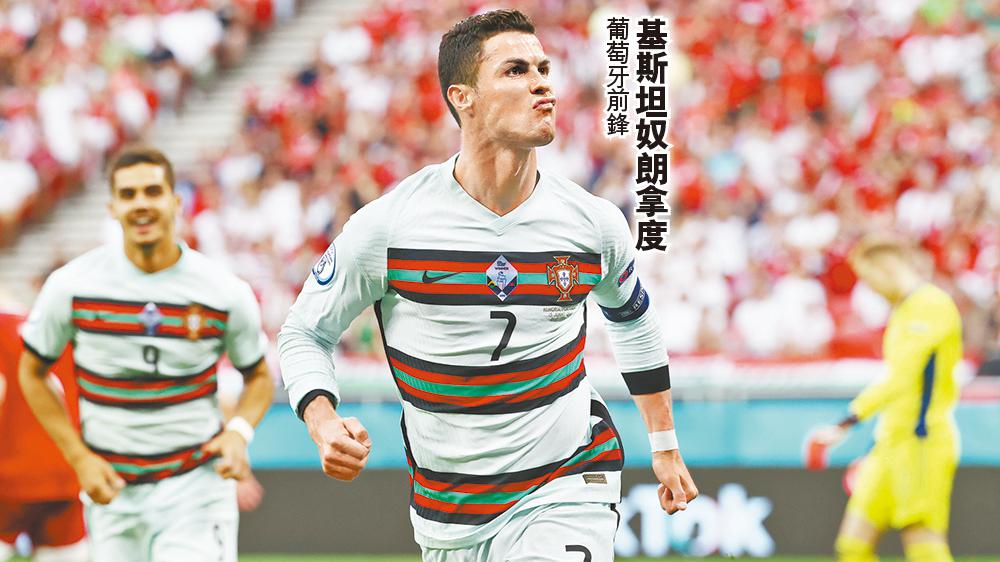 衞冕葡萄牙於周二歐國盃F組首輪分組賽對匈牙利,結果憑基斯坦奴朗拿度(C朗)於比賽尾段連入兩球,3:0大勝對手。C朗又再刷新紀錄,以11個入球超越法國名宿柏天尼,成為歐國盃史上最多累積入球球員。
