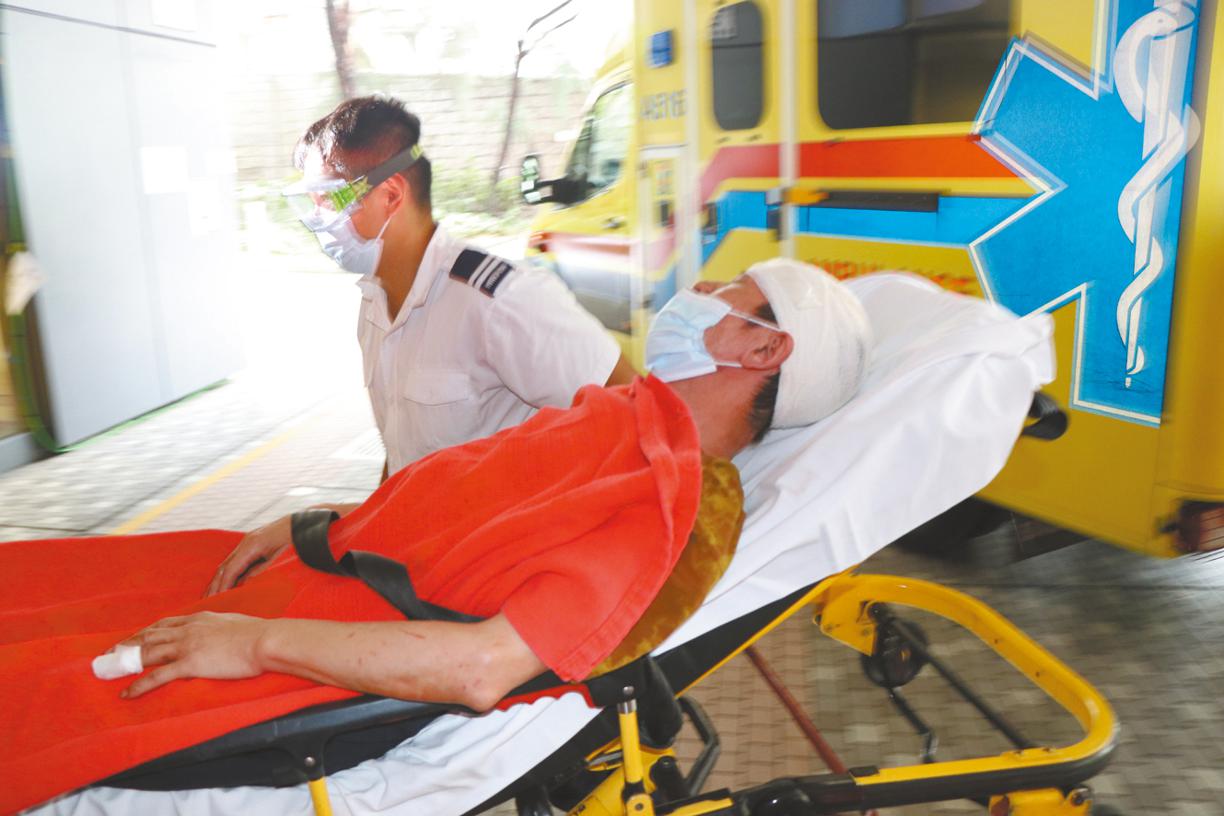 【本報訊】馬鞍山發生倫常血案,一對已離婚疑仍然同住夫婦,昨因感情事發生爭執,在單位內男子懷疑手持雙刀斬向對方,女方一度以刀指嚇及以手還擊,最終兩敗俱傷。女事主身中多刀,滿身鮮血逃出單位,跑到鄰廈梯間暫避,男子窮追不捨,保安見狀立即鎖上鐵閘及報警,男子呆坐門外木凳,事後兩人均告被捕,女事主送院危殆。